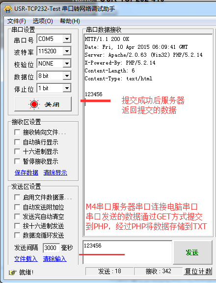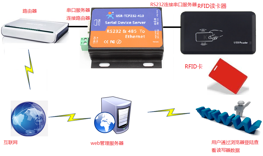 3:串口服務(wù)器串口連接電腦,串口發(fā)送數(shù)據(jù)123456,提交成功后將數(shù)據(jù)返回,然后服務(wù)器存儲提交的數(shù)據(jù)。然后連接讀卡器到串口服務(wù)器串口,然后讀卡器刷卡后,串口自動把卡號傳給串口服務(wù)器,串口服務(wù)器將數(shù)據(jù)傳到的網(wǎng)頁服務(wù)器PHP。