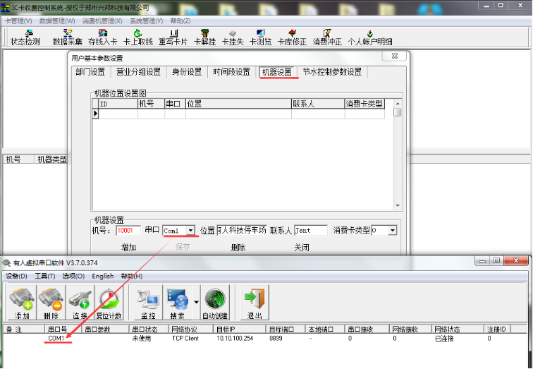 j)打開一卡通管理軟件,在系統管理.用戶參數設置用戶基本參數設置機器設置中添加設備。