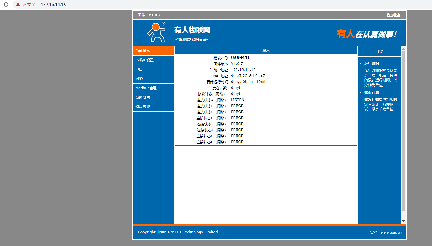 6. 完成重啟后,此時的M511使用的是路由器分配的IP,這時將電腦連接M511的網線連接同一路由器,使電腦與M511都使用路由器分配的IP,且都存在于同一網段。可以從路由器中獲取M511當前IP,通過此IP進入內置網頁,或者通過設置軟件搜索當前M511IP。通過新IP進入內置網頁。