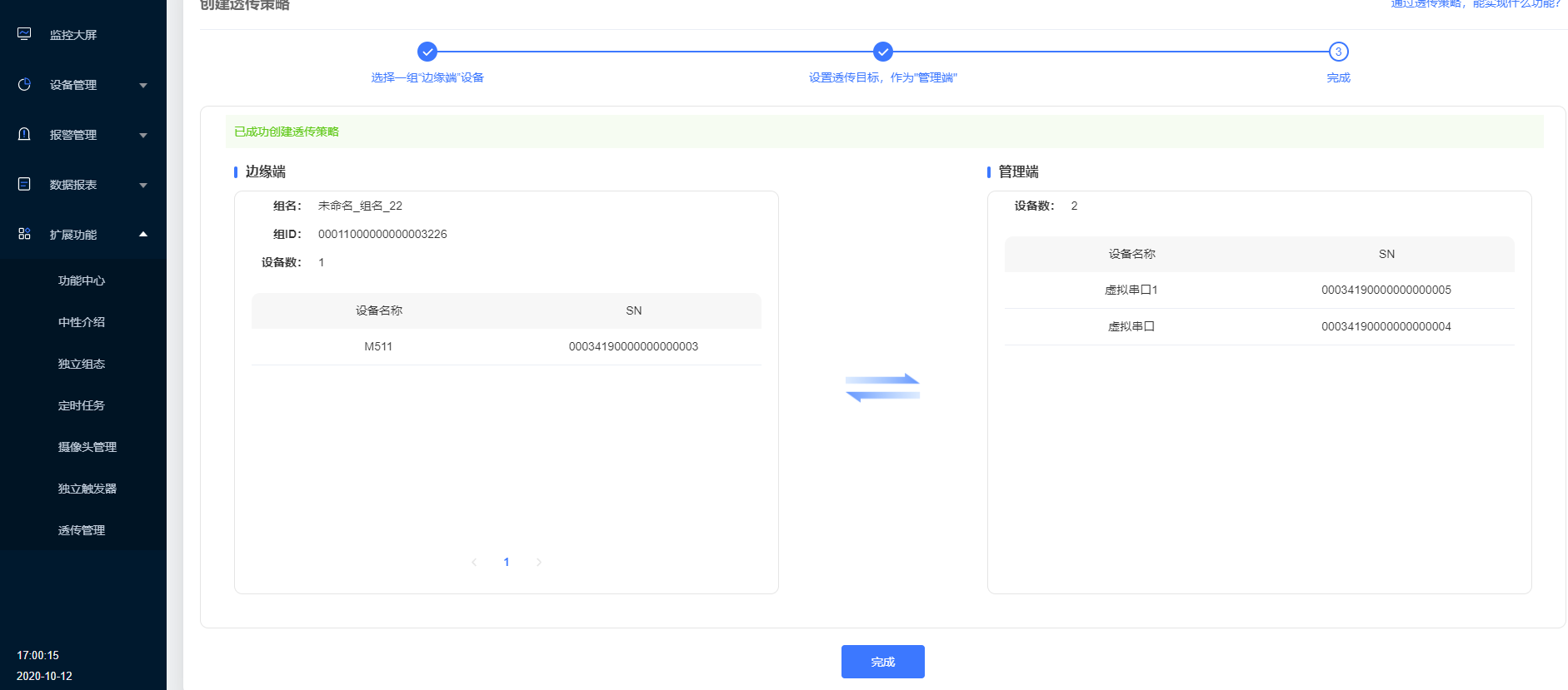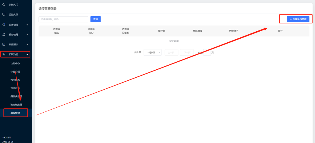 7.點擊擴展功能,選擇透傳管理,創建透傳策略