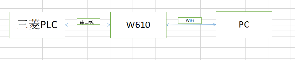 將串口服務器W610的串口通過232串口線連接三菱PLC,使用電源適配器給W610上電,電腦連接W610的WiFi,處于同一局域網