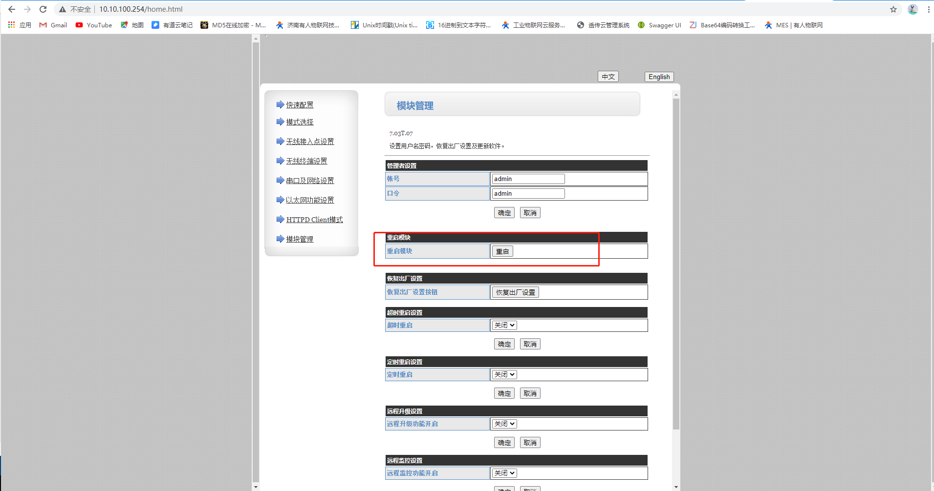 2.瀏覽器輸入10.10.100.254進入610的內置網頁