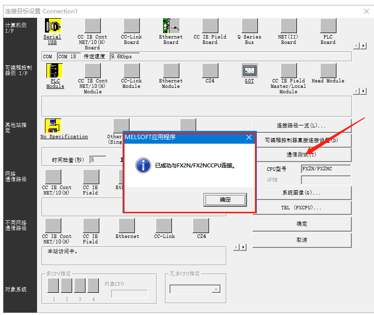 8.點擊連接目標,選擇生成的虛擬串口,波特率為PLC的波特率