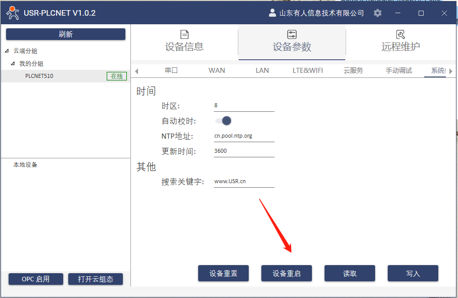 1.登錄有人云賬號和密碼,點擊添加設備,輸入PLCNET510的SN和MAC,點擊下一步