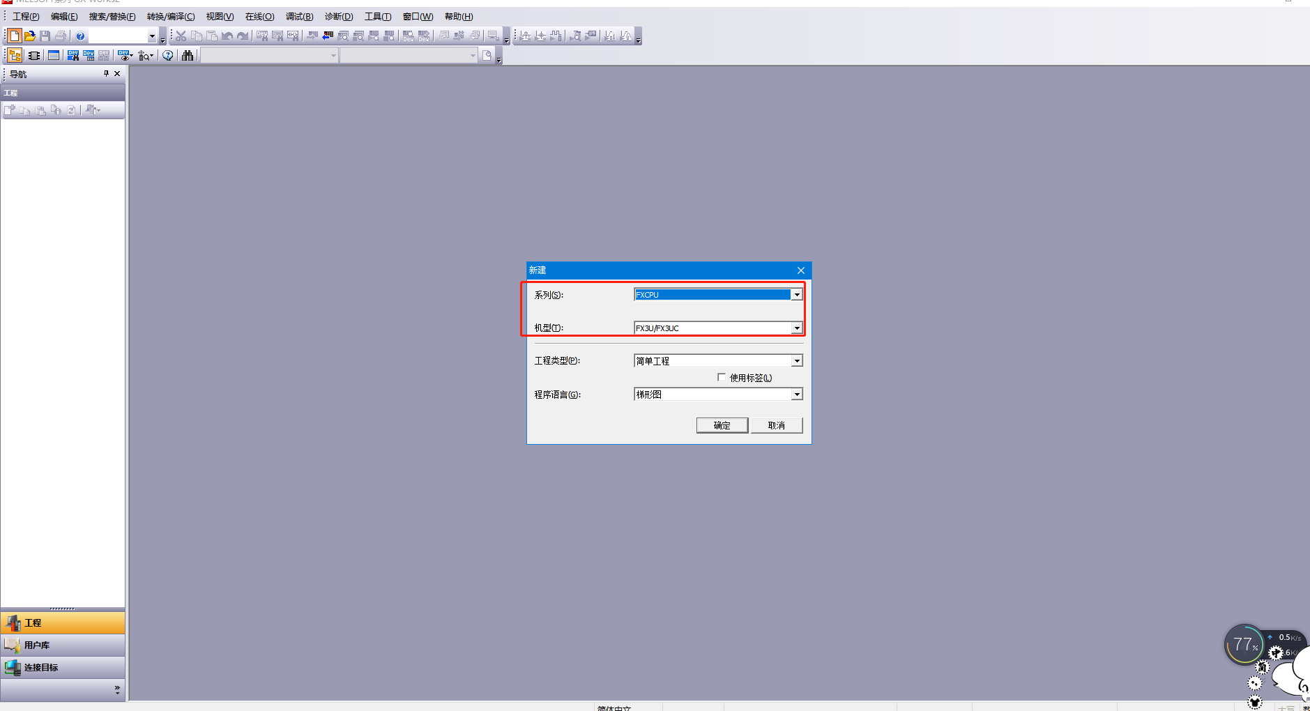 10.打開三菱上位機軟件,新建工程,選擇對應PLC型號
