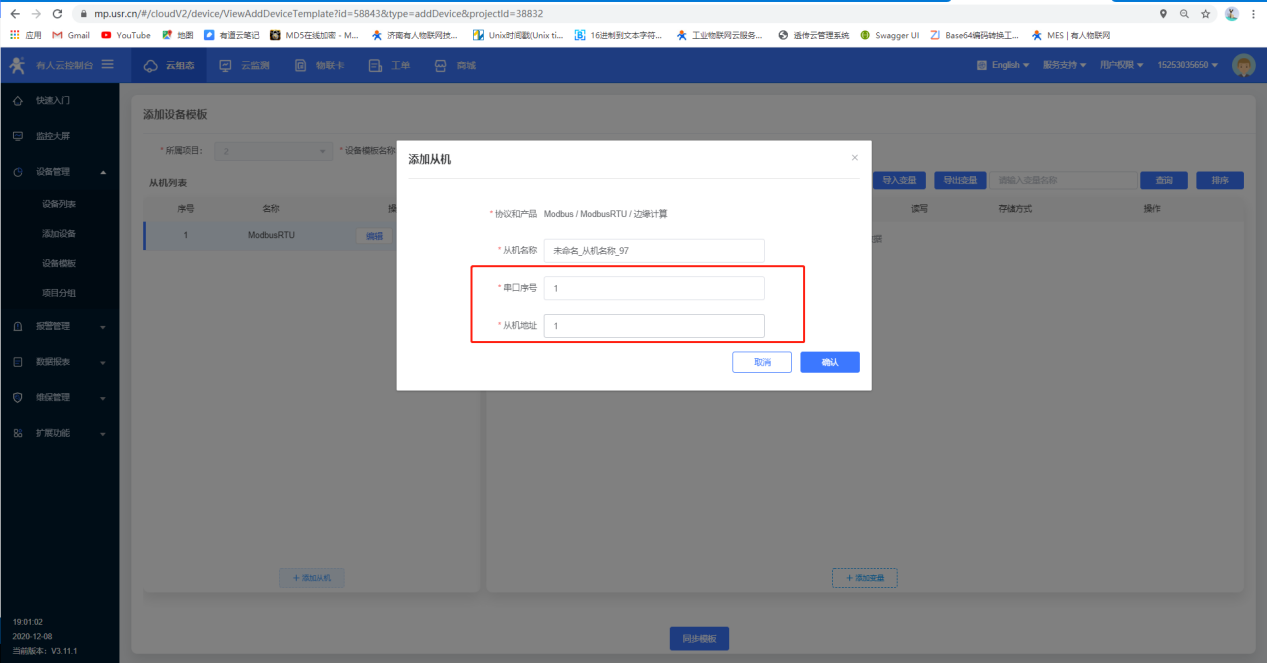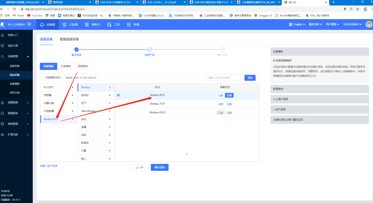 2.添加設備模板,選擇 modbus/PLC 》modbus 》modbusRTU