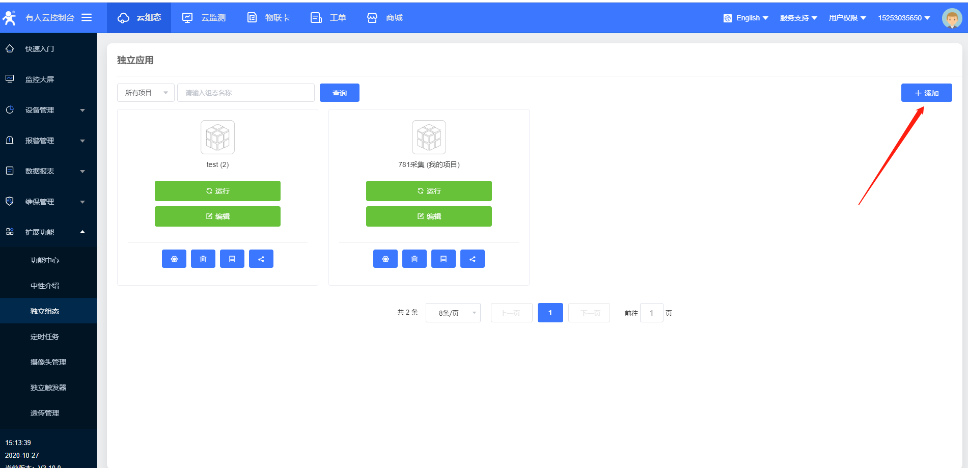 1.登錄有人云,擴展功能》功能中心》開通獨立組態