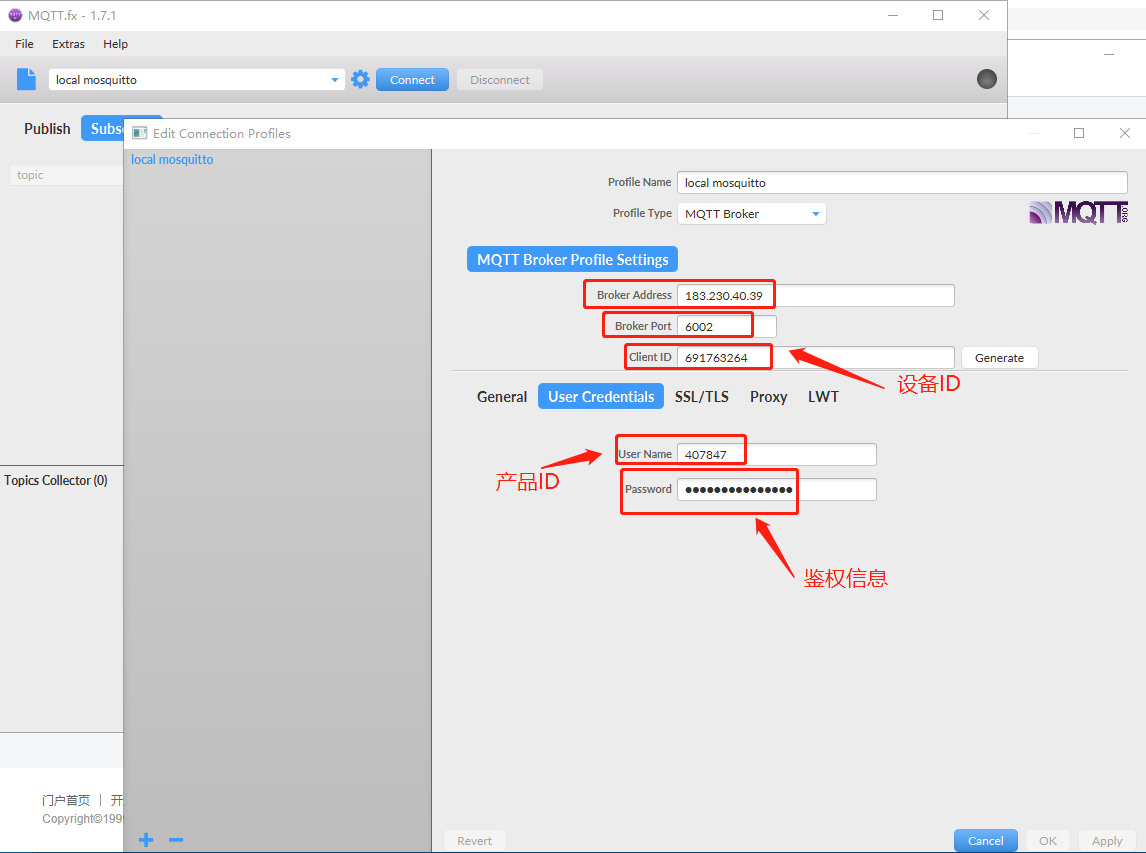 客戶端ID:設備ID,在云平臺的設備列表可查看