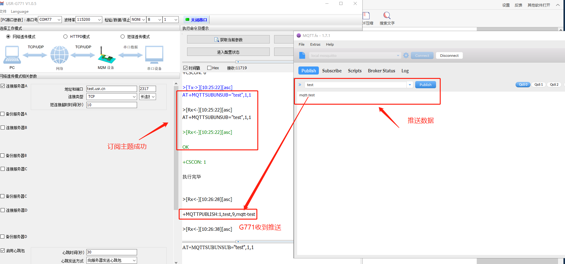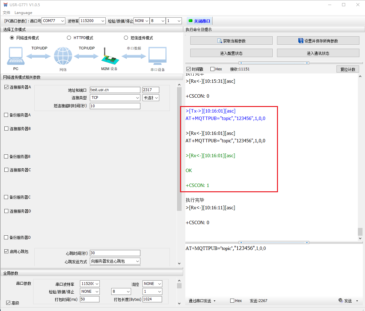 1) 目前Cat.1模組常規出貨版本默認為透傳模式,需要修改工作模式來支持MQTT的連接操作。相關指令如下,設置完成后
