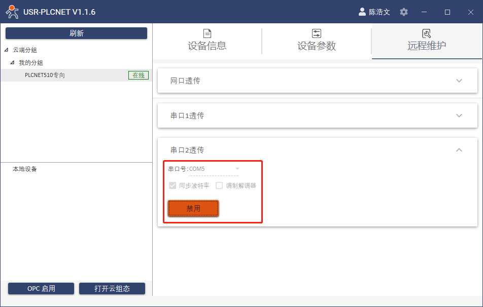 ? 重啟完成后,打開串口2透傳,生成虛擬串口(可在設備管理器查看)