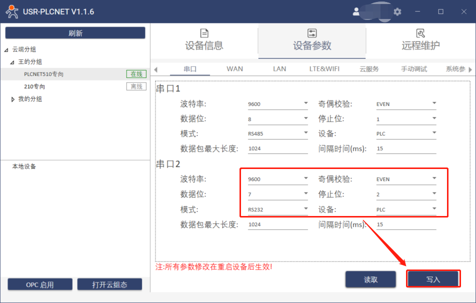 ? 設(shè)置串口參數(shù):232模式-9600bps-EVEN-7-2(和PLC串口參數(shù)一致)
