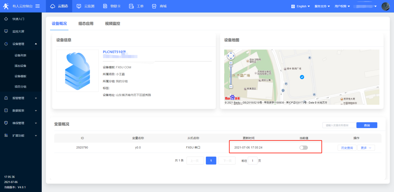 ? 重啟完成后,觀察平臺數據,采集成功(數據采集時請不要打開遠程維護的透傳功能)