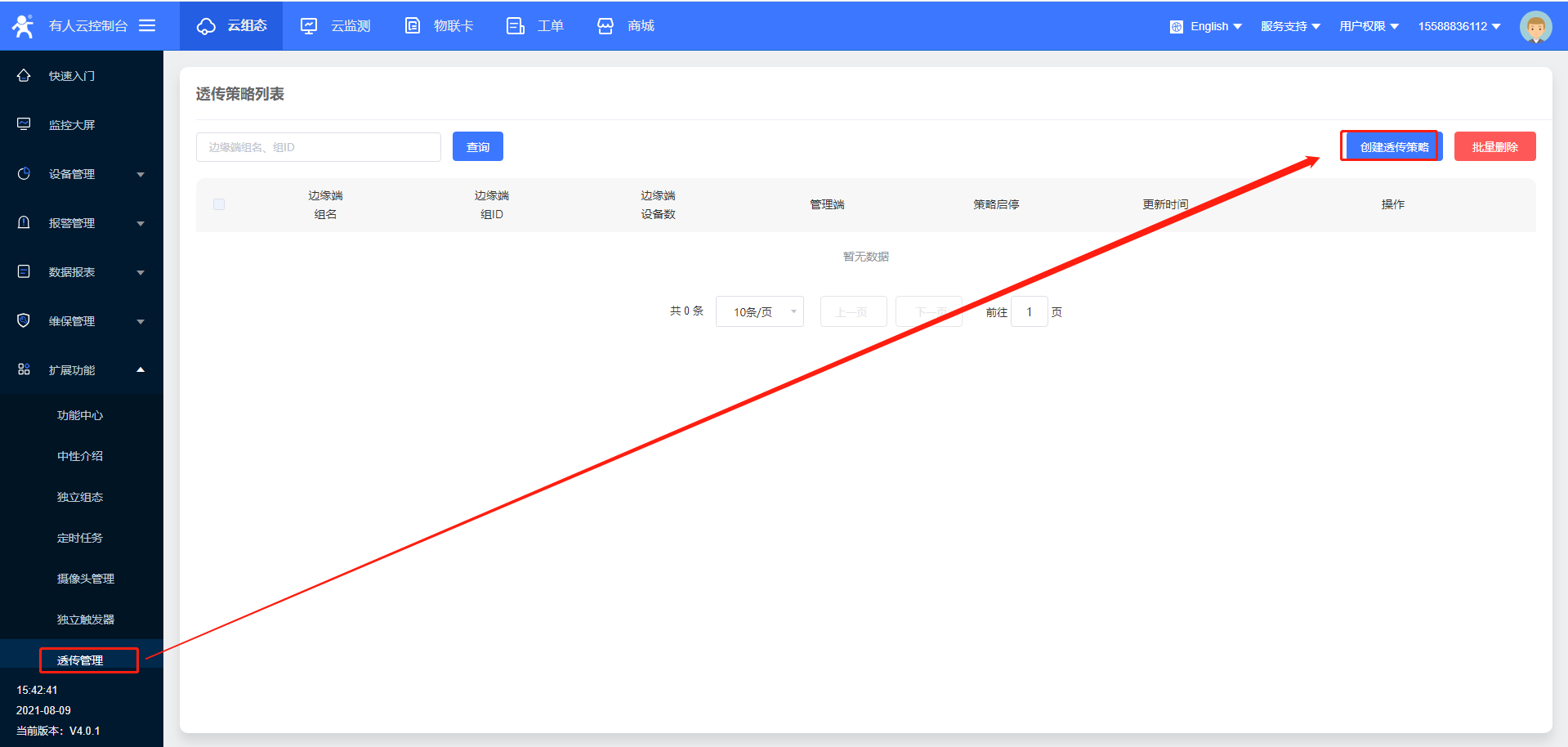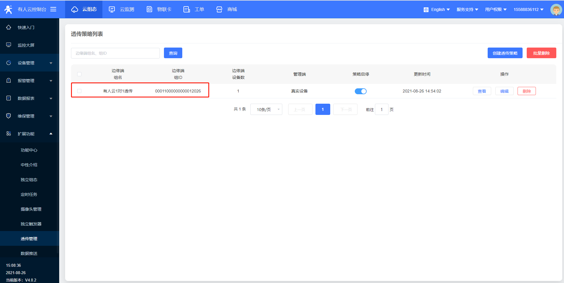 10>透傳管理策略創(chuàng)建成功