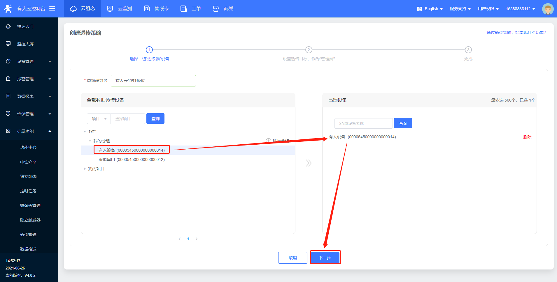 USR-G807連接有人云1對1透傳