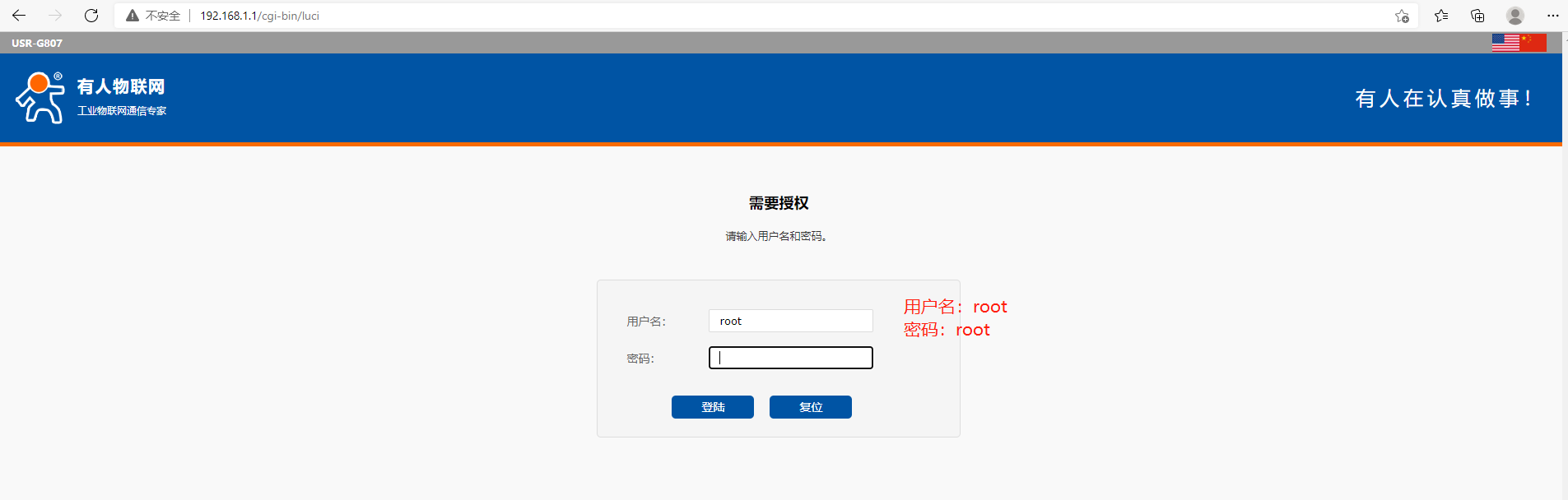 3>在瀏覽器上輸入192.168.1.1,用戶名和密碼都是root,登錄G807的內(nèi)置網(wǎng)頁
