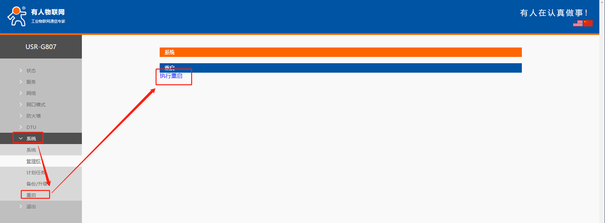 6>重啟G807模塊,在網(wǎng)頁上修改G807的參數(shù),都需要重啟一下G807,修改后的參數(shù)才會生效的。