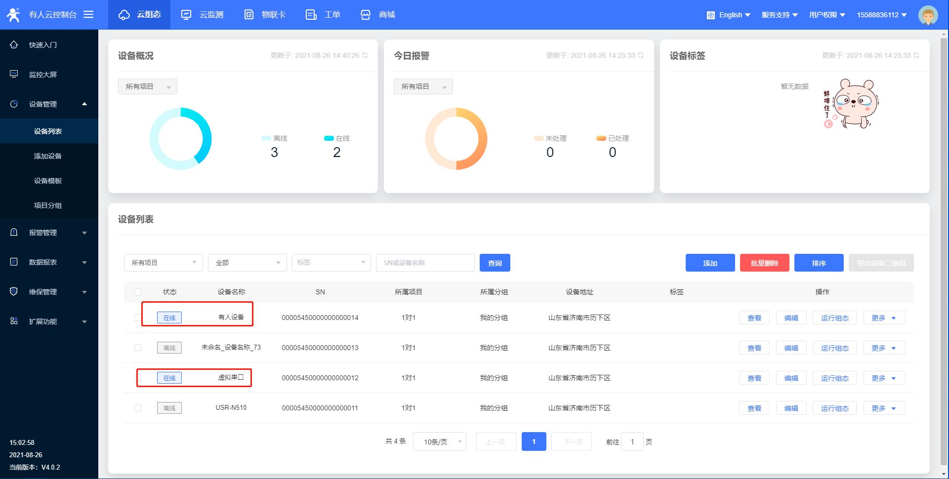 7>等待G807重啟成功,在有人云平臺成功上線