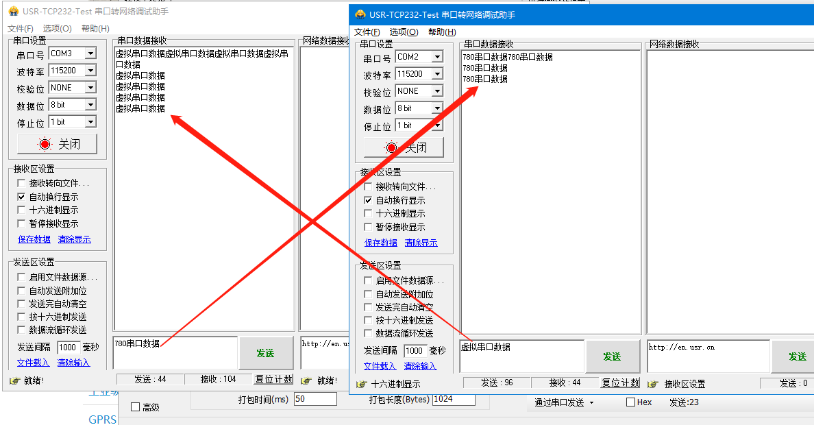 打開兩個串口調(diào)試軟件