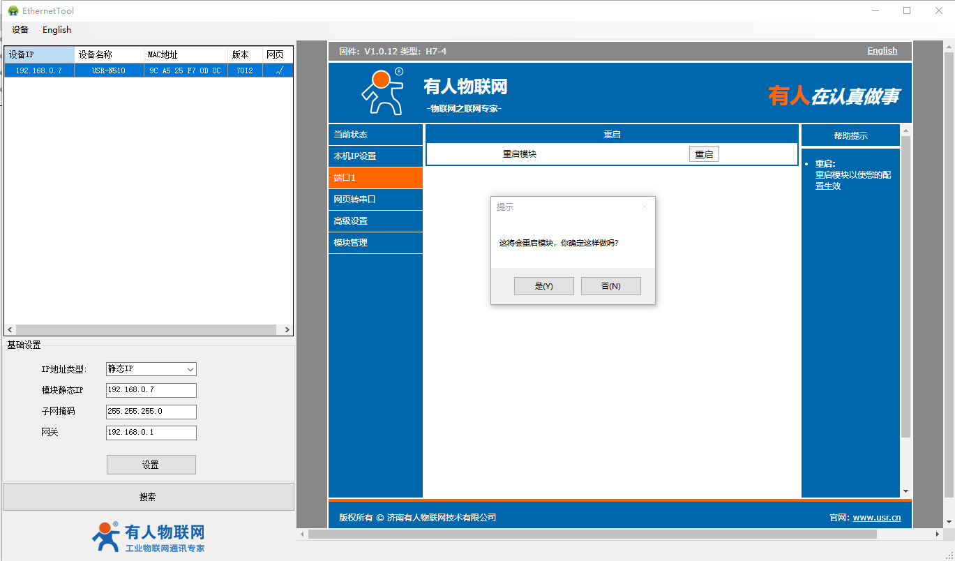 2、USR-N510-H7設置軟件http://m.0575400.com/Download/383.html