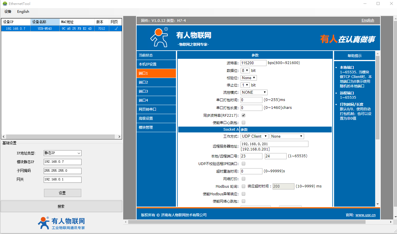2、USR-N540-H7設置軟件http://m.0575400.com/Download/383.html