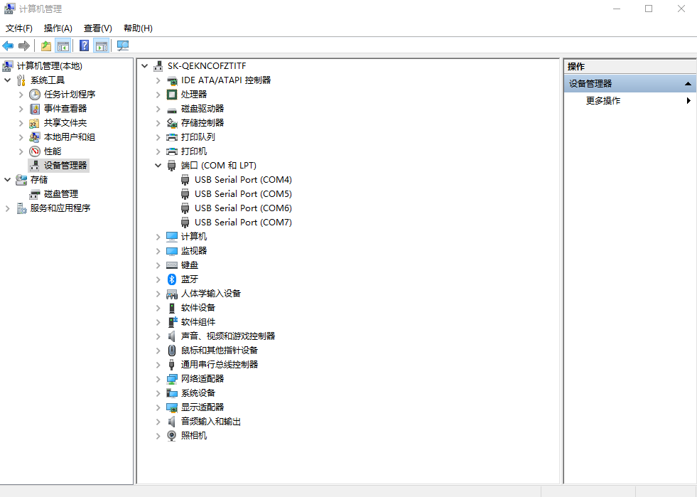 電腦鼠標點擊計算器管理,右擊,點開設備管理器,點擊端口,查看接USR-LG210-L和USR-LG206-L-C-H10的USB-RS232串口線COM口號。
