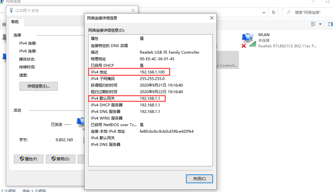3.雙擊該網卡,點擊詳細信息,可以查看電腦獲取到的IP以及網關