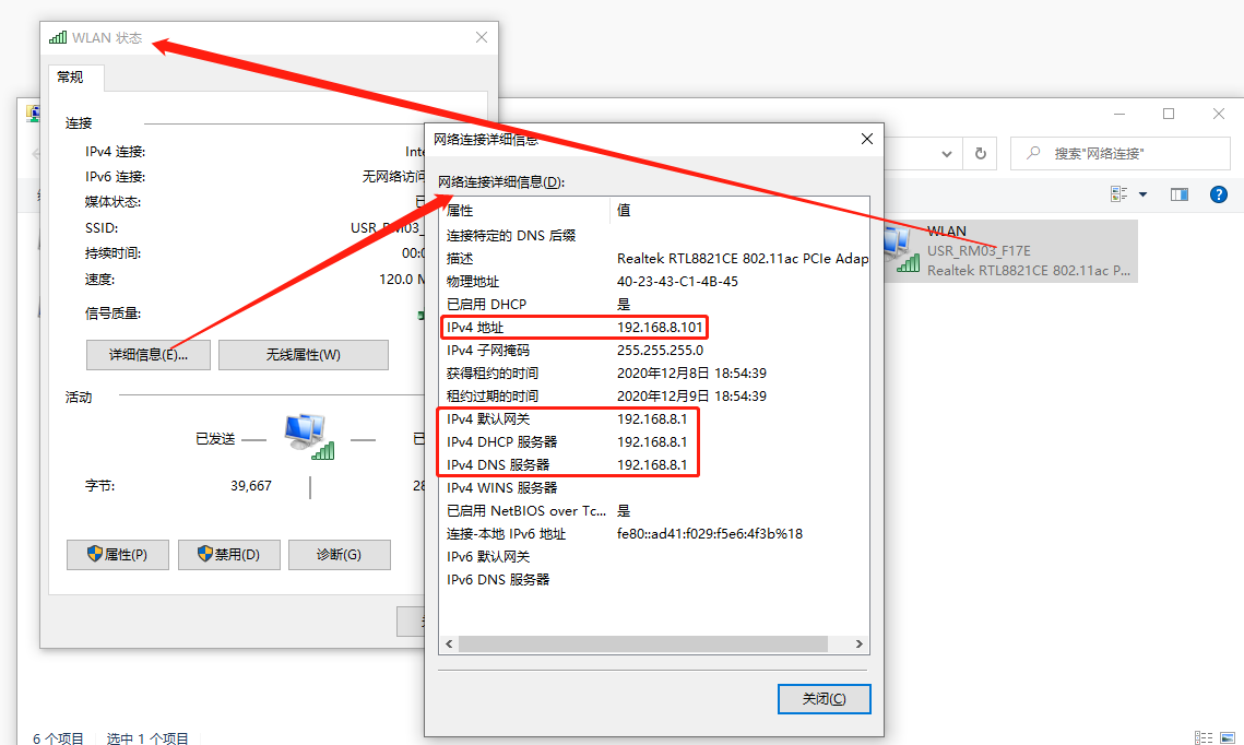 7、參數應用完畢后,重新連接有線或者WiFi,重新查看對應的網絡適配器,則可以看到PC獲取到的IP網段為剛剛修改后的網段