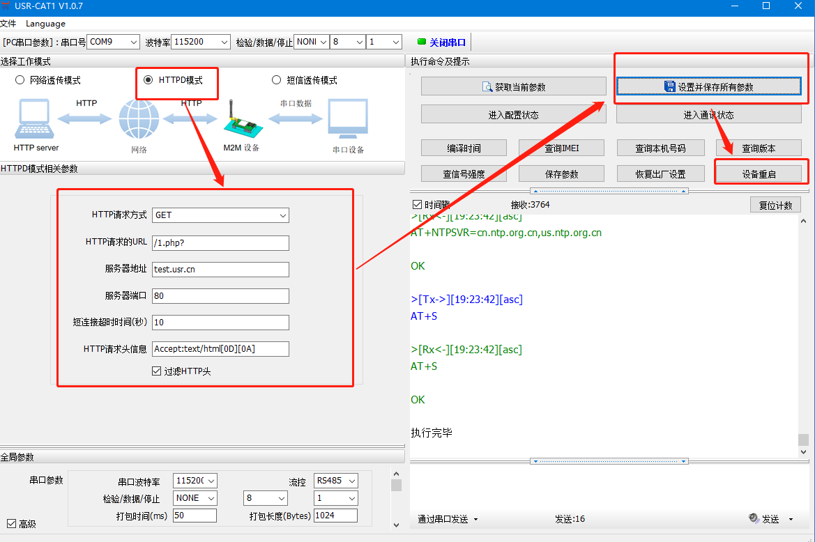(1) 硬件連接:裝上sim卡,接上天線,DR154的串口通過UAB轉485接到PC上,(如果是DR154,就用USB轉232接到PC上)用我司提供的適配器供電。