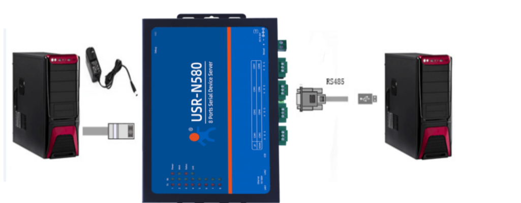 USR-N580-H7產品,USB-RS485串口線接N580串口一,注意485接線線序,USB-RS485 A線接N580 串口一的A端子,USB-RS485 B線接N580 串口一的B端子,USB頭插入電腦USB口。
