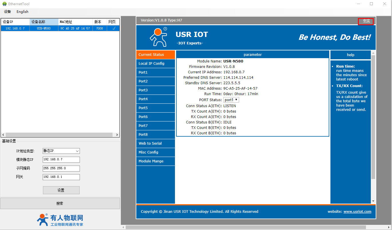 2、USR-N580-H7設置軟件:
