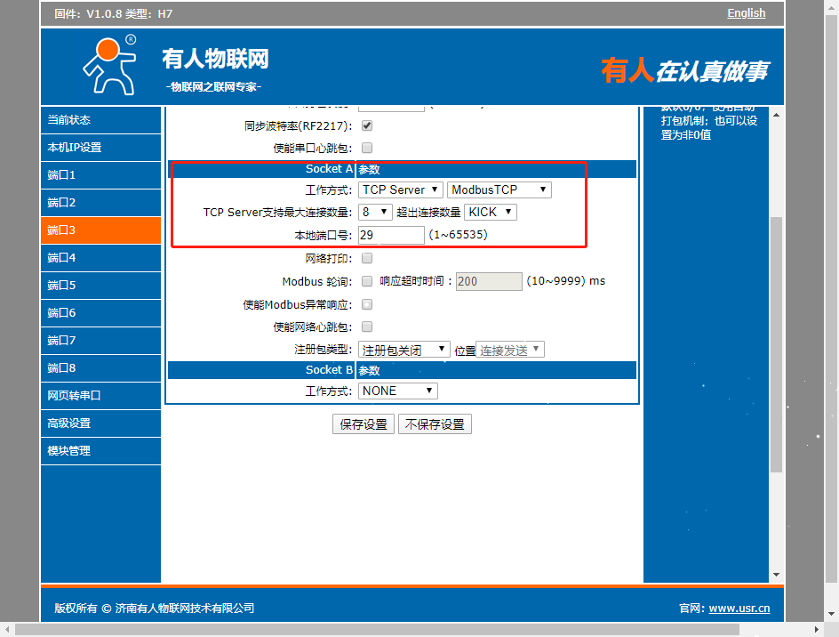 USR-N580-H7 MODBUS網關功能