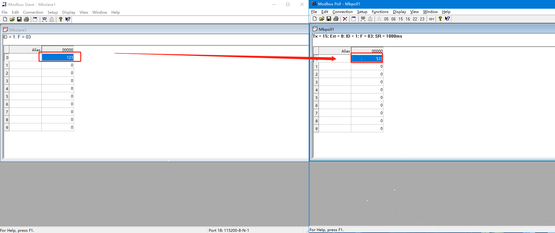 4.測試數據能否通信,通信成功,轉換完成。