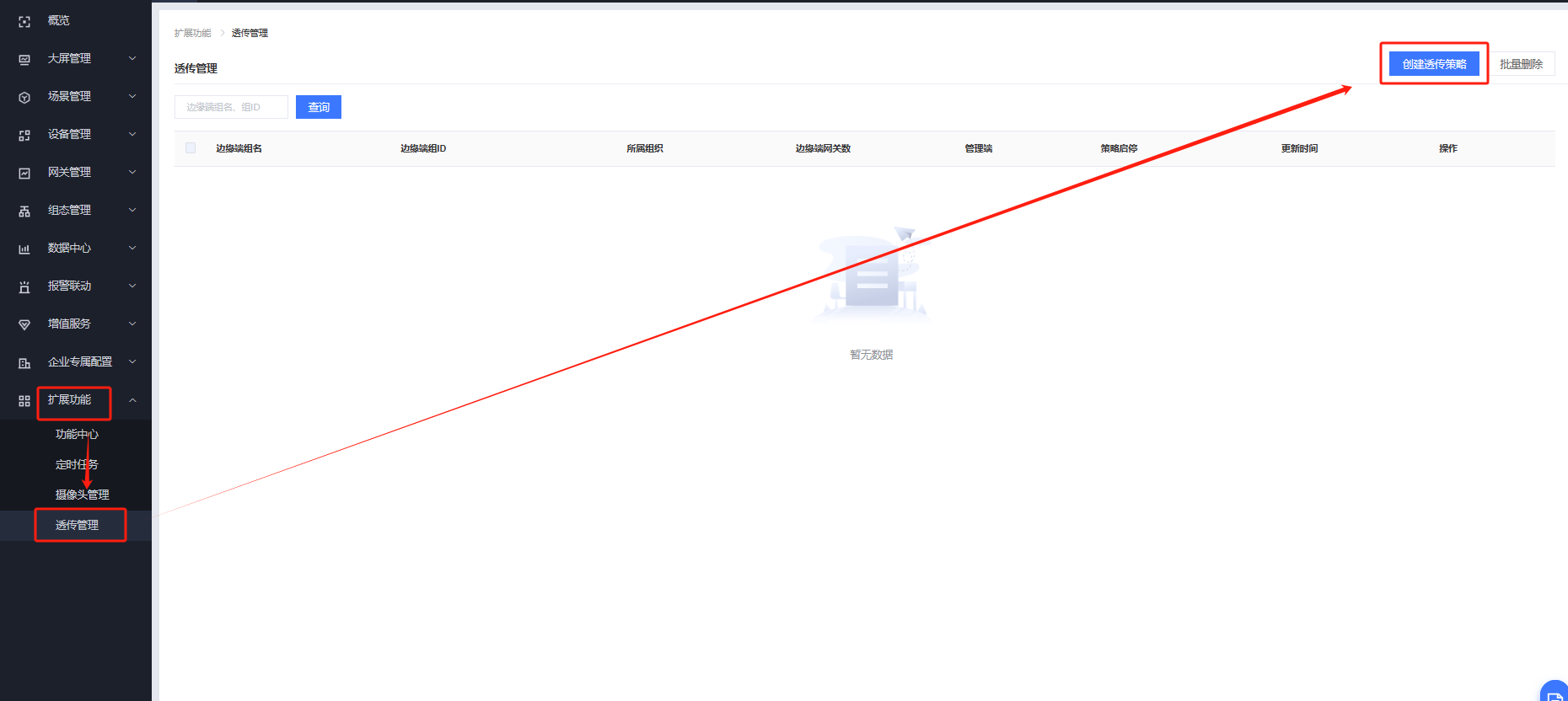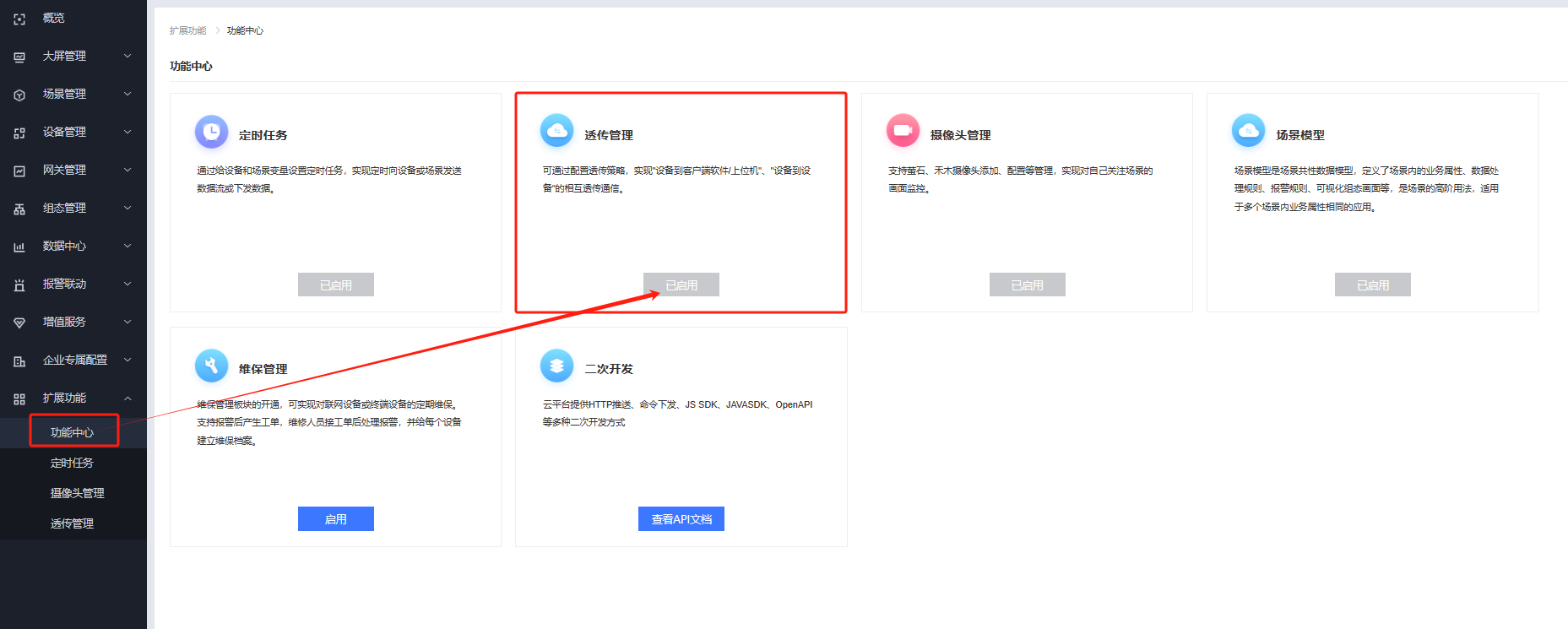 有人云擴展功能--功能中心--啟用透傳管理功能
