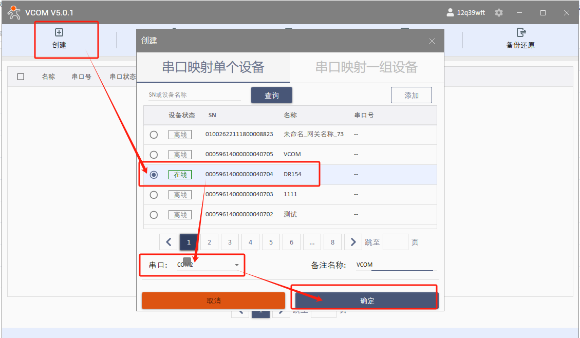 打開V3版本的虛擬串口軟件,點擊添加串口,填入圖中示例信息,點擊確認。