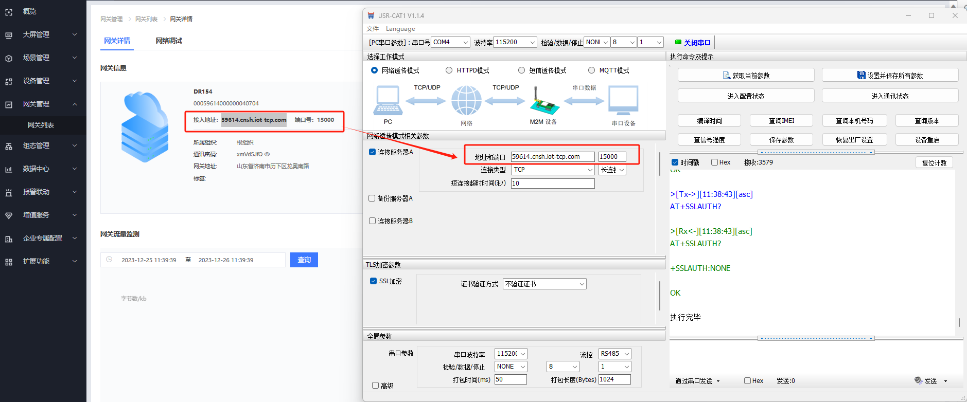 此時獲取到有人云分配的接入地址和ID密碼,需要將此信息填入到網關設備中