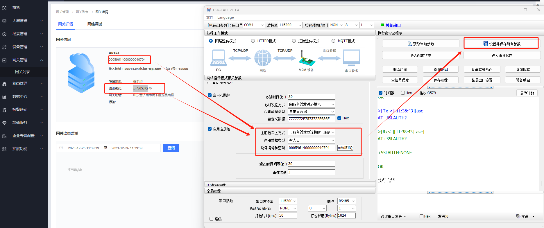 填入有人云分配的ID和密碼,設置并保存所有參數,重啟設備