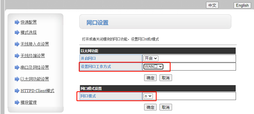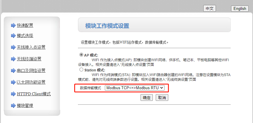 4>工作模式設(shè)置:選擇modbus TCP<=>modbus rtu,等所有參數(shù)設(shè)置完成后一起重啟
