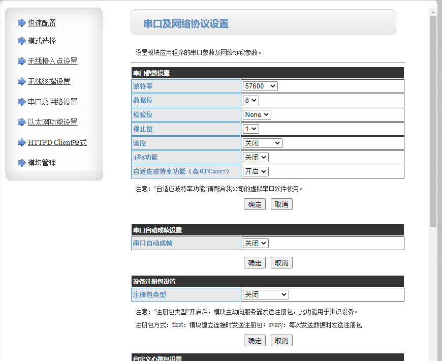 6>串口及網(wǎng)絡(luò)設(shè)置,可以根據(jù)實(shí)際情況修改W610的串口等參數(shù)在本案例中我們保持W610出廠默認(rèn)參數(shù)