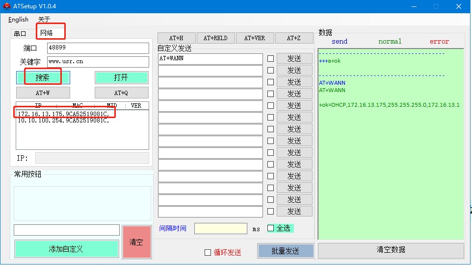 1>查詢W610獲取到的IP地址,打開AT設(shè)置軟件:共有2中方式,