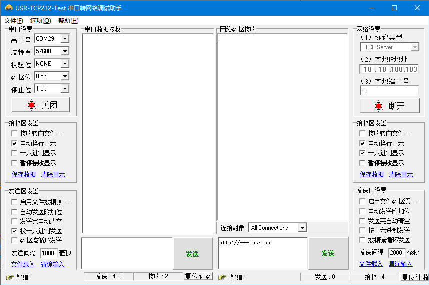 5、打開USR_TCP232_TEST軟件