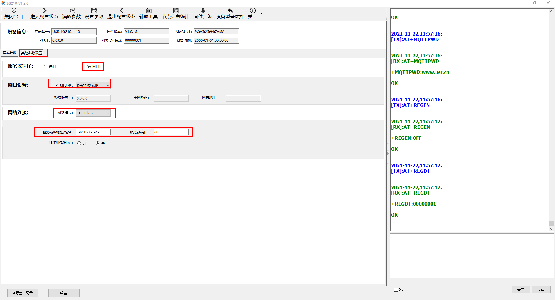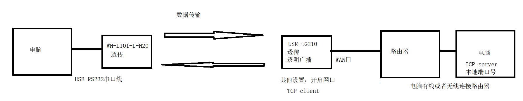 WH-L101-L-H20和USR-LG210連接TCP服務器-透傳模式透明廣播示例