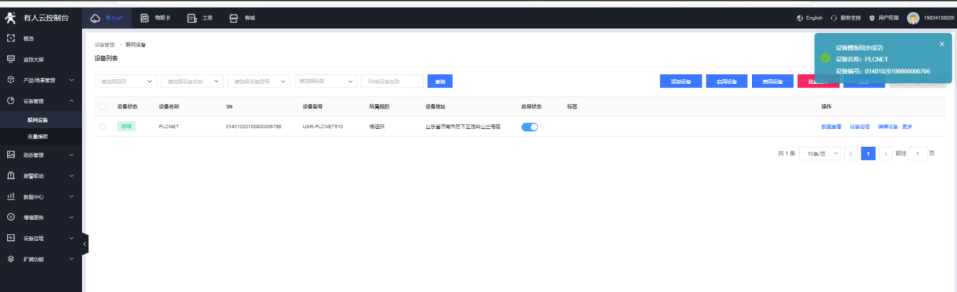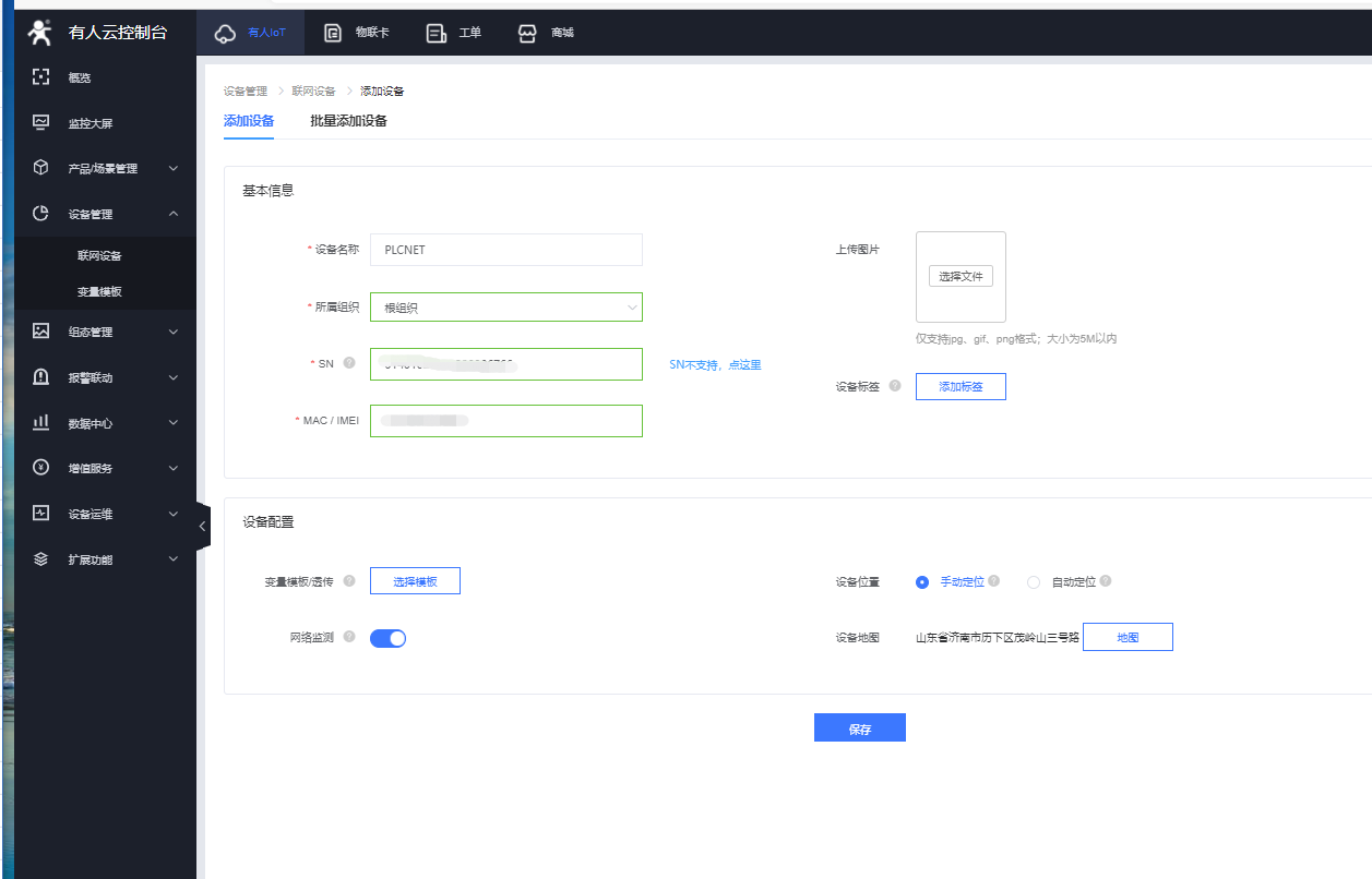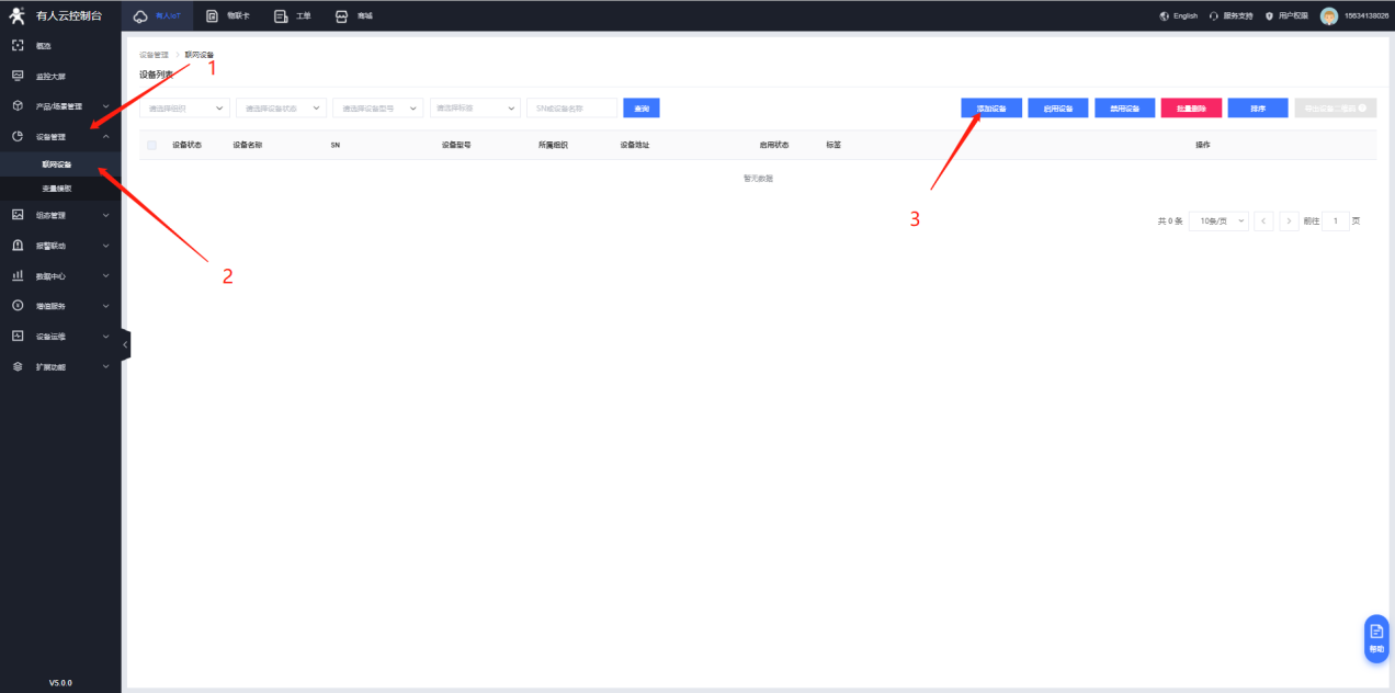 2. 點擊設(shè)備管理->聯(lián)網(wǎng)設(shè)備->添加設(shè)備
