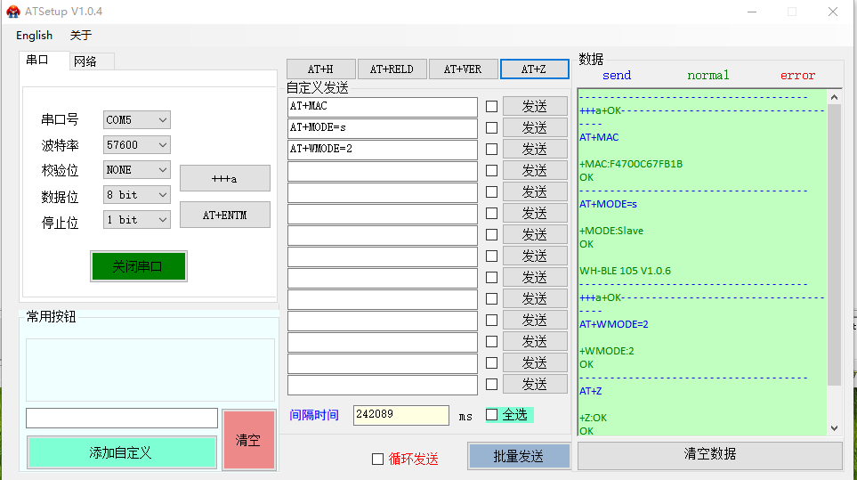 (2)發送AT+MAC查詢從機MAC:F4 70 0C 67 FB 1B