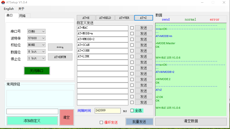 三、WH-BLE105從機和WH-BLE105主機通訊測試: