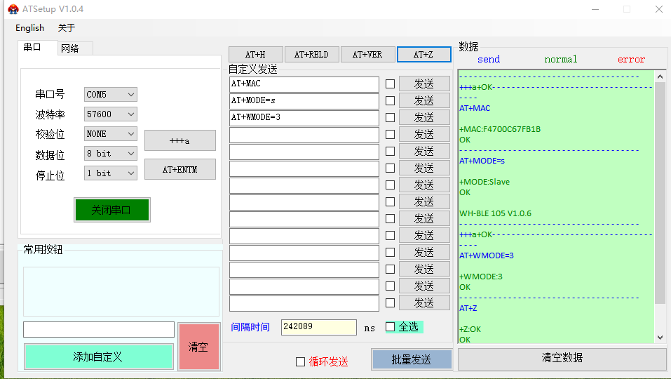 (2)發送AT+MAC查詢主機MAC:F4 70 0C 67 FB 21