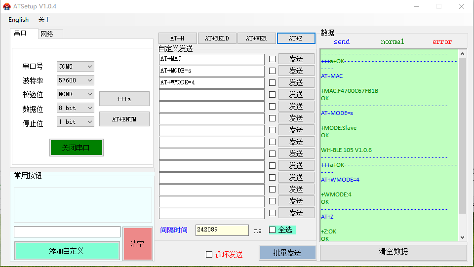 二、WH-BLE105主機模塊參數設置: