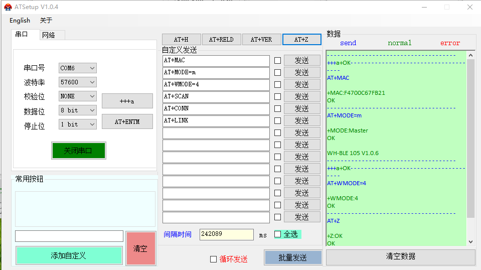 (2)發送AT+MAC查詢主機MAC:F4 70 0C 67 FB 21