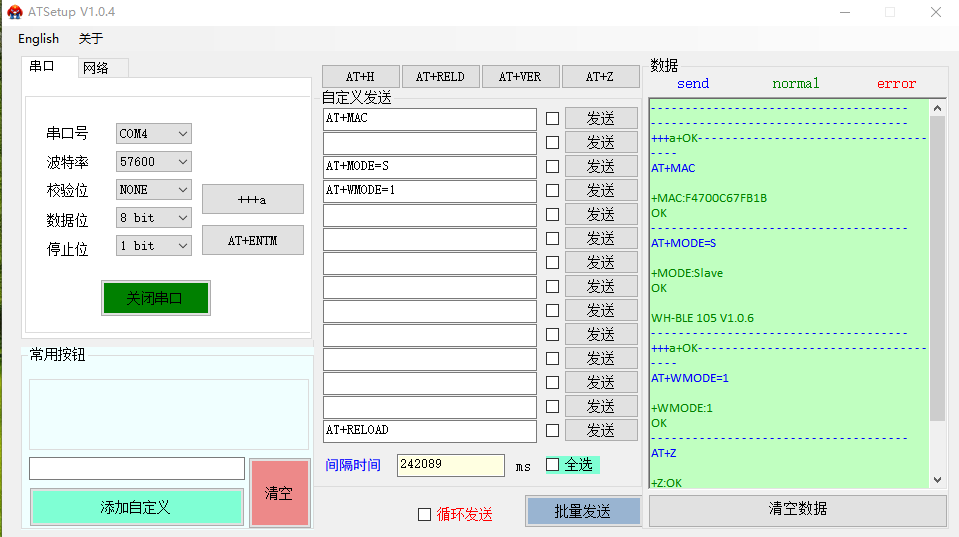 (2)發(fā)送AT+MAC查詢從機MAC:F4 70 0C 68 01 B6
