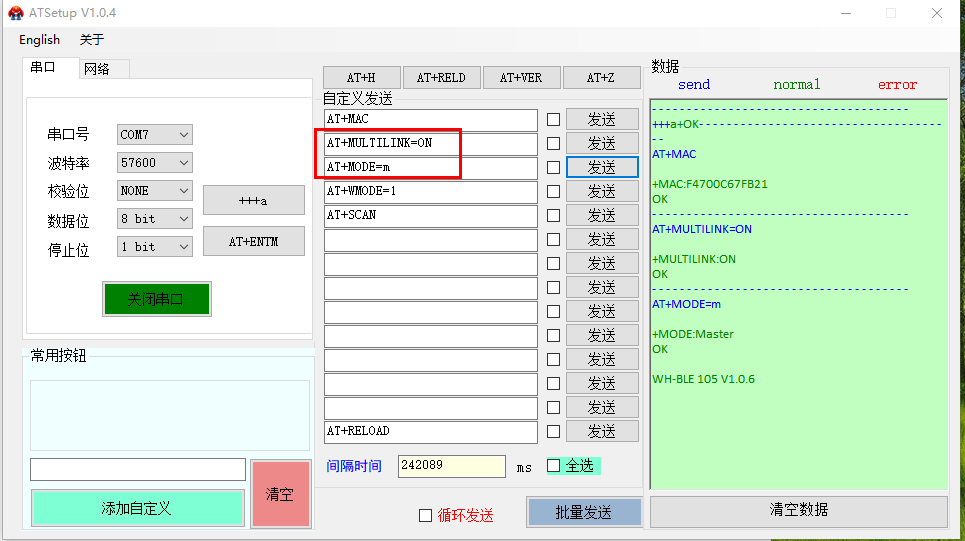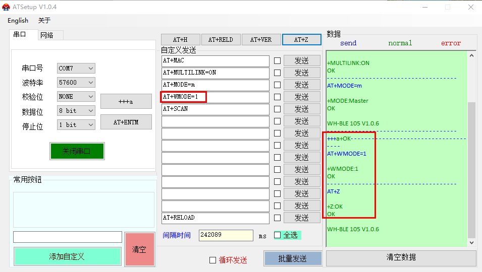 1、COM7串口設置主機模式