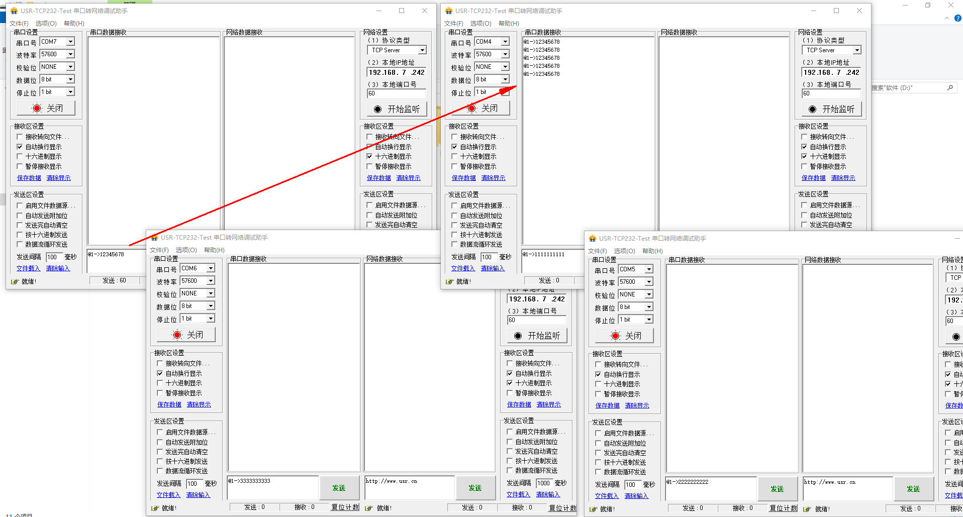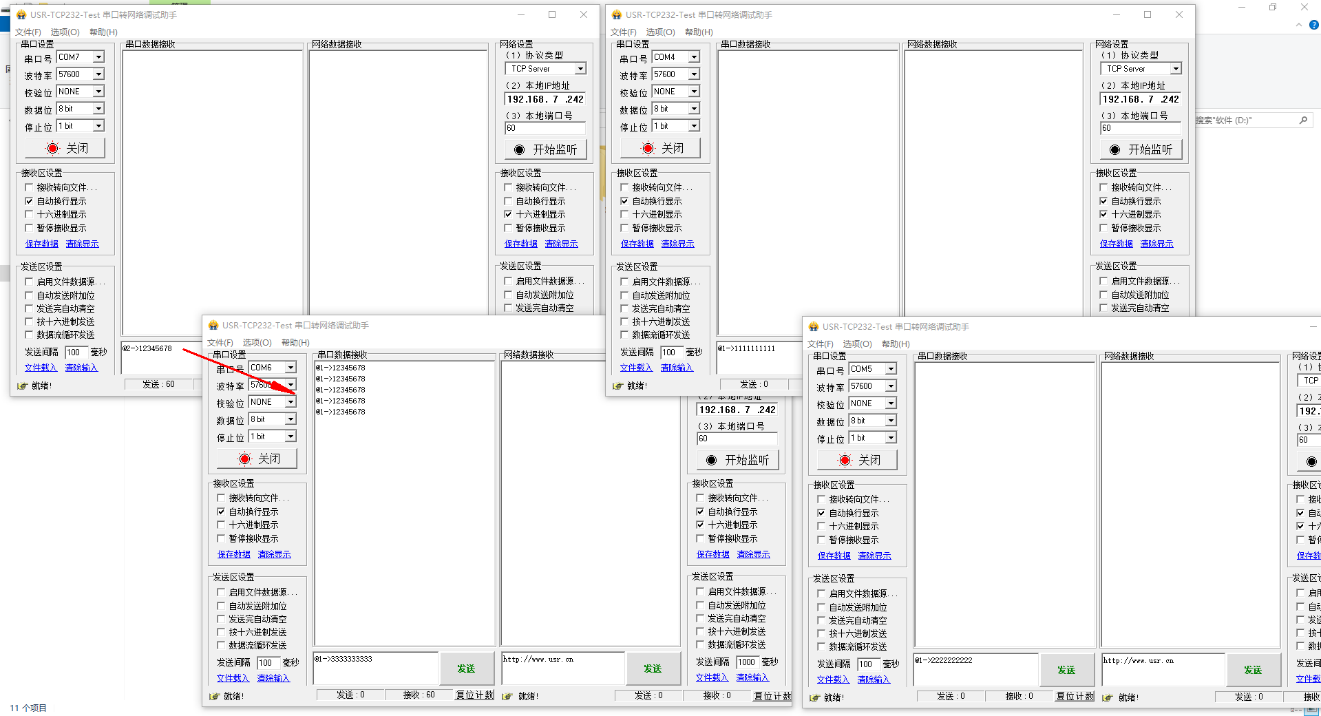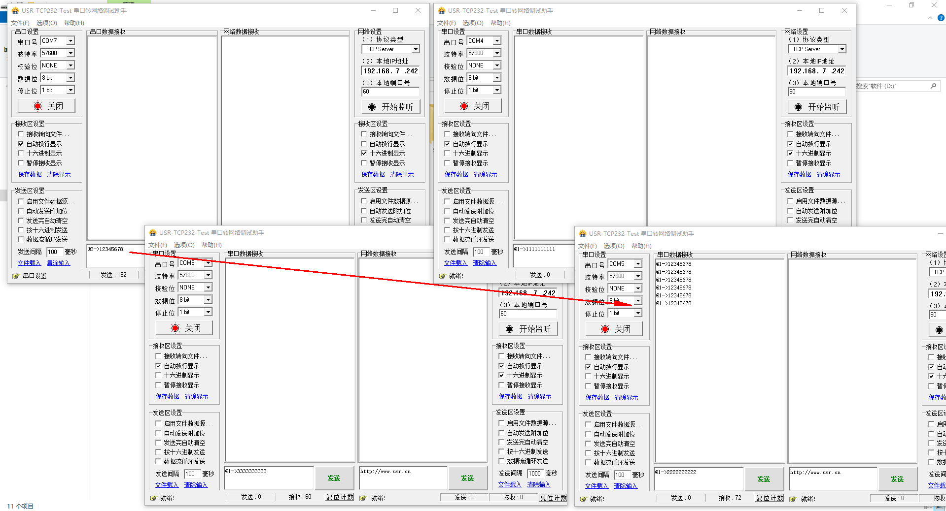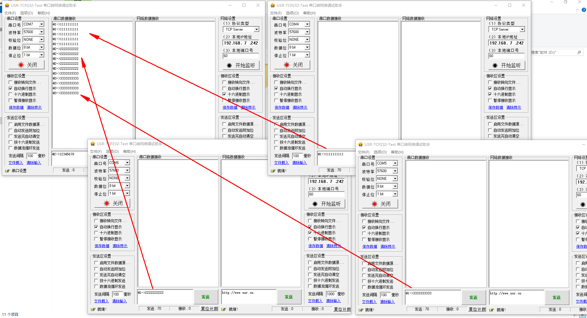 備注:COM7 接的主機,COM4接的從機1,COM5接的從機2,COM6接的從機3。
